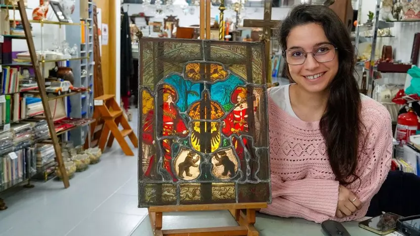 En la tienda hay más piezas y la propietaria de Antiquitatum Taberna quiere romper con el mito de las antigüedades son caras. “Tenemos piezas desde un euro, y ahora que llega la Navidad, es posible hacer un buen regalo por 20 o 30 euros”. Y, para quien pueda, también una vidriera de 500 años de historia para iluminar la casa.