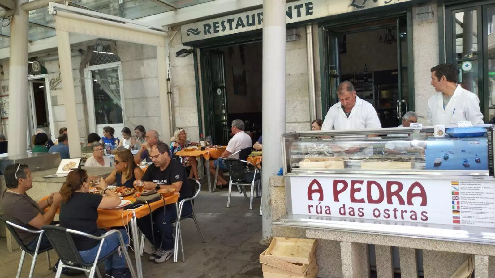 Las ostreras que durante años fueron el símbolo del turismo de Vigo han dejado paso definitivamente a la nueva generación, en este caso curiosamente todos hombres. Como es conocido, las mujeres de Arcade -Medalla al Mérito del Trabajo- que durante décadas abrían cada día docenas de moluscos en la Rúa Pescadería, el auténtico nombre de la calle, fueron retirándose por el inevitable paso del tiempo aunque en algunos casos dejaron herencia familiar. A Isabel Seoane, qeu era la última que todavía pasaba por su puesto al menos hasta que llegó el covid, la reemplazó su hijo José Rodríguez.