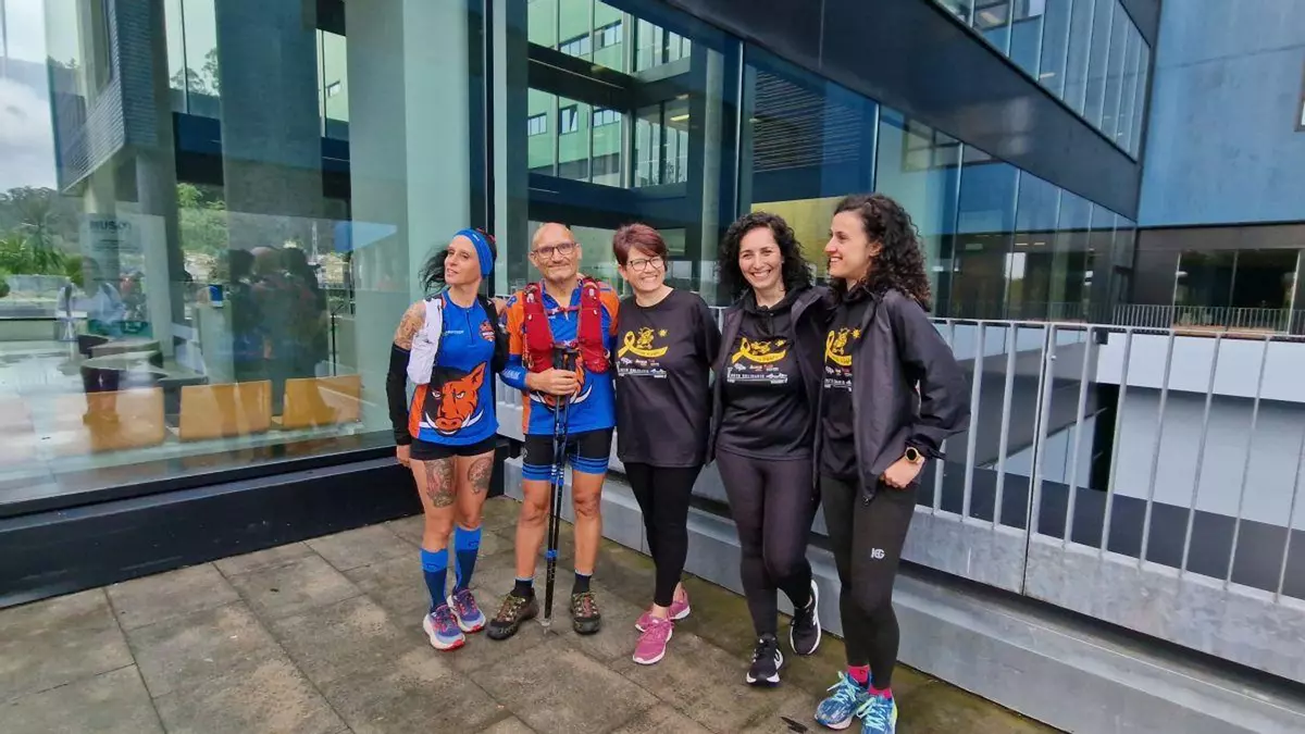 Detrás de la iniciativa están cuatro madres de Ourense que se unieron a raíz de la enfermedad de sus hijos y que contaron con el respaldo de la Unión Deportiva Barbardás. La carrera no competitiva salió ayer desde el Hospital Álvaro Cunqueiro de Vigo, porque es el centro de referencia para los niños oncológicos de Ourense. Son 120 kilómetros que esperaban recorrer en una sola etapa, con una duración aproximada de 24 horas y con su meta en el centro comercial Pontevella de Ourense, desde donde saldrá una última andaina hasta el Complejo Hospitalario. Entre los participantes estaba Mónica Piñeiro, una deportistas del club Avión Castrelo Piragüismo que también es madre y que ayer se ponía en la piel de estas mujeres.