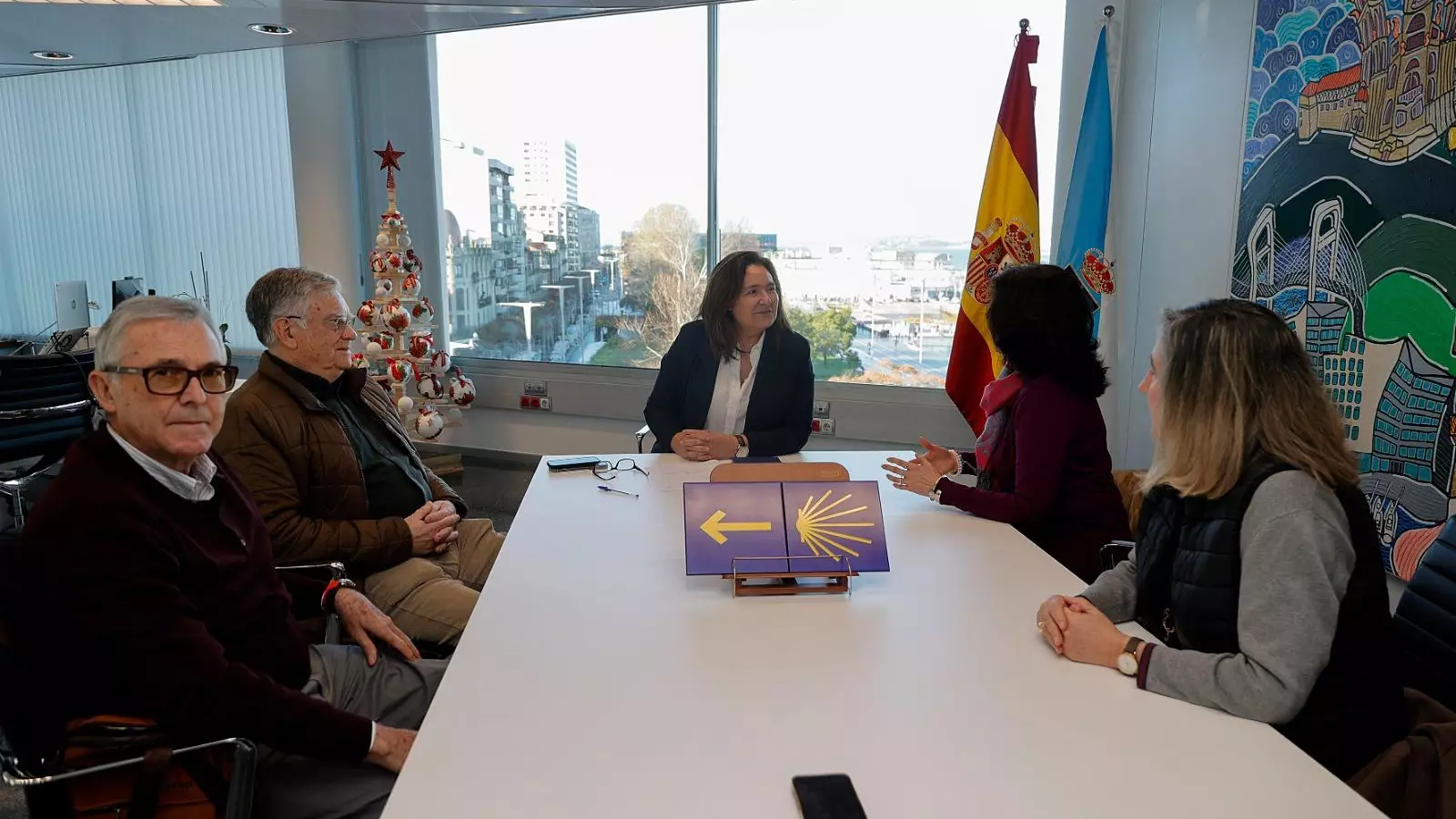 La delegada territorial de la Xunta en Vigo, Ana Ortiz, mantuvo una reunión con la nueva directiva de la asociación Amigos de los Pazos, representado por su presidenta Yashmina Mª Shawki-Aziz, y los vocales Grato Amor Moreno, Gonzalo Prado González y Beatriz López-Chaves Castro. Durante el encuentro, la representante autonómica comprometió la colaboración del Gobierno gallego para los actos de celebración, el próximo mes de mayo, del décimo aniversario de la declaración oficial del Camino Portugués de la Costa.