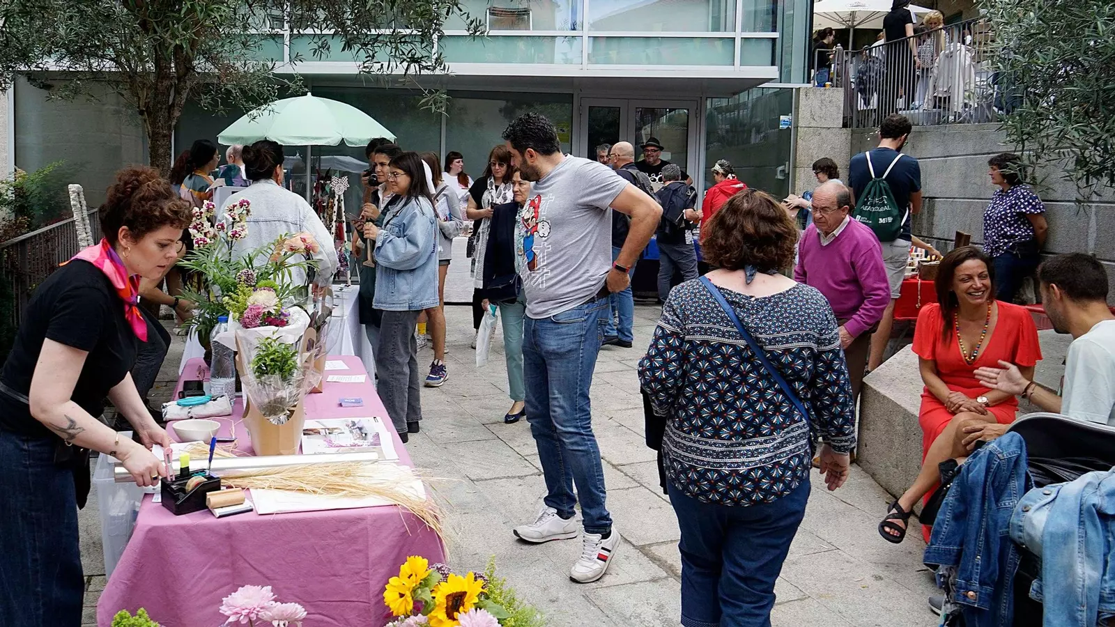 Mirando al cielo por temor a la lluvia, durante la mañana se instalaron 25 puestos con las más variadas propuestas: ilustración, flores, artesanía, chubasqueros elaborados con plásticos reciclados, bolsos de crochet, cerámica… Finalmente, el cielo se abrió y la zona enseguida se llenó de familias jóvenes, como hacía tiempo que no se veía, que llegaron a provocar un auténtico atasco con carritos de niños. La programación, con cuentacuentos en la Fundación Évame Oroza, sesión vermú con pop rock de los 80, tarot, taller de cómic y actuación de Paul Clarke animaron la jornada y las compras.