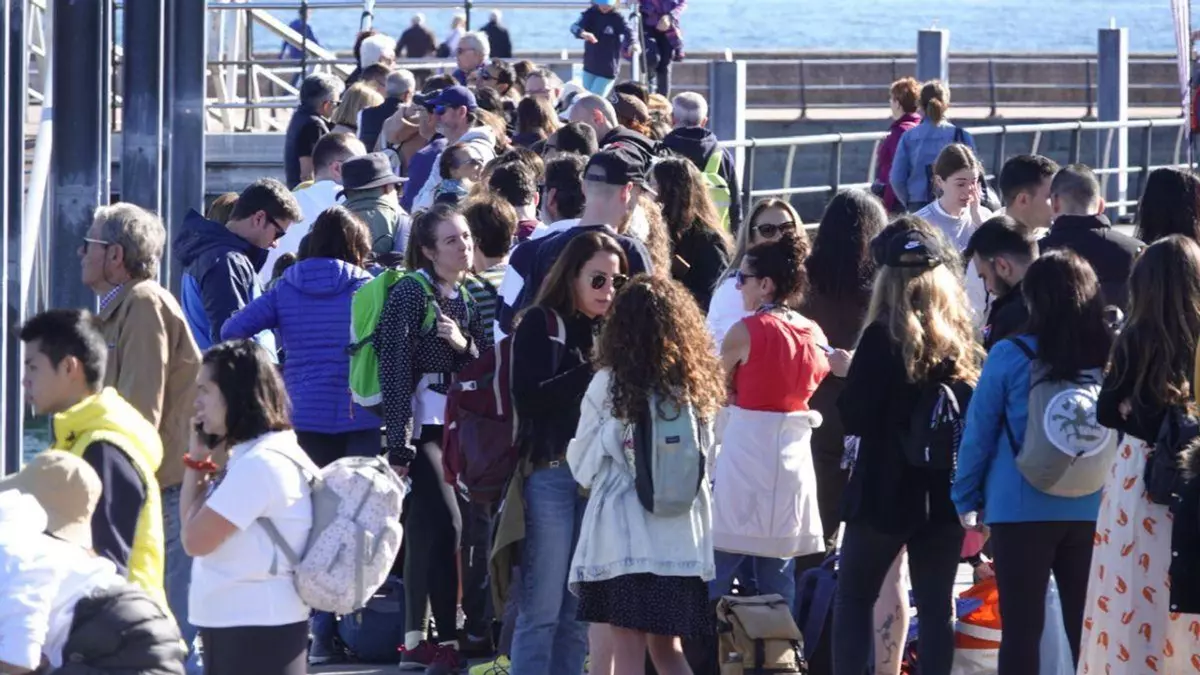 Ayer se superaron los 1.500 visitantes, con barcos llenos y largas colas para embarcar con destino a Cíes. La mayoría, llegados de diferentes partes de España para disfrutar de los 24 grados de máxima que registró Vigo y los 16 del mar. Otros, más locales, decidieron quedarse en Vigo y aprovechar el buen tiempo para desconectar durante estas mini vacaciones. El turista de Portugal, también presente, es otro de los habituales en temporada alta en las Cíes, y ayer no fue la excepción, aunque la presencia de visitantes de otros países era casi inexistente.