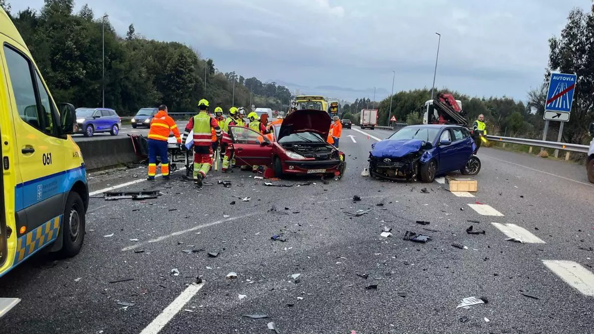 Poco después, los equipos de emergencia confirmaron que eran cuatro los turismos implicados en el siniestro, teniendo que ser excarcelado uno de los conductores y siendo atendidos tres heridos.