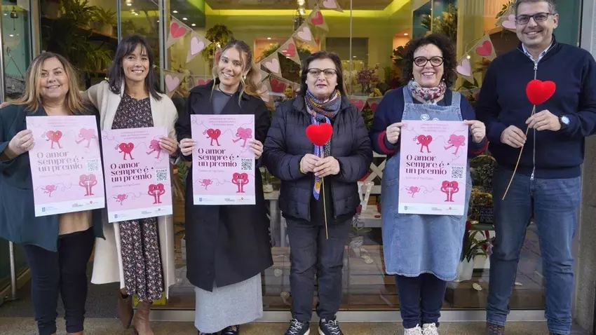 La asociación Zona Vigo Centro y la federación Vigo Comercio lanzaron ayer una nueva y colorida campaña para promover el comercio local en la ciudad con motivo de San Valentín. Bajo el lema "O amor sempre é un premio", la iniciativa busca no solo celebrar el amor sino también destacar la importancia de apoyar a los negocios locales, que se identifican con carteles en los que los corazones rojos son los protagonistas.