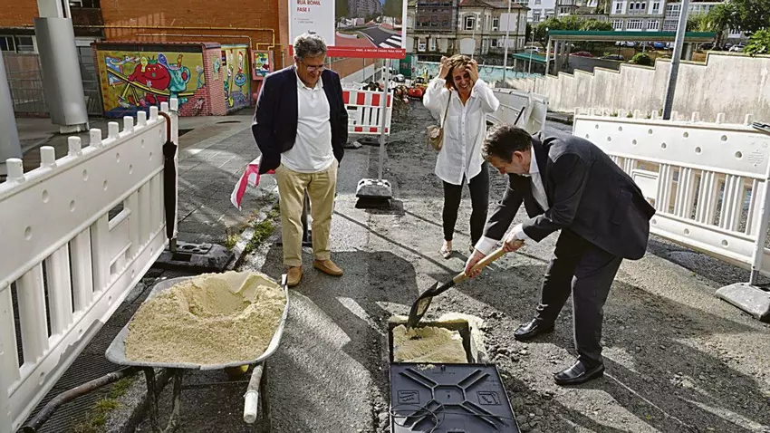 Abel Caballero puso ayer por la mañana la primera piedra de estas obras, acompañado por los concejal Javier Pardo, y Nuria Rodríguez, además de técnicos municipales y de la constructora.