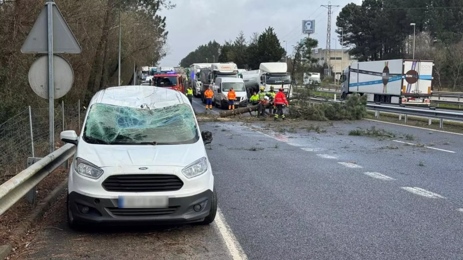 Cortada la autovía A-55 en Porriño por la caída de un árbol sobre un coche
