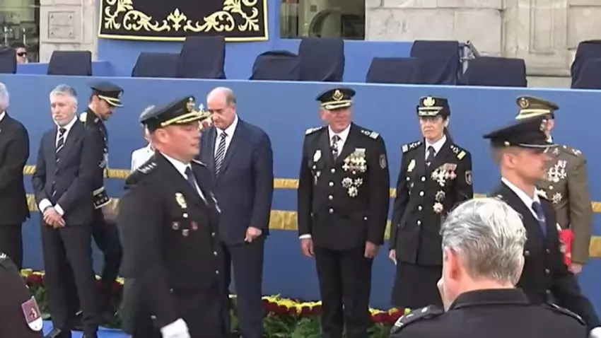 De las autoridades presentes, fue José Ángel González quien le impuso la medalla, fundiéndose ambos en un gran abrazo. Ahora, los dos han sido cesados tras la querella de una agente de Policía y la investigación judicial abierta al respecto.