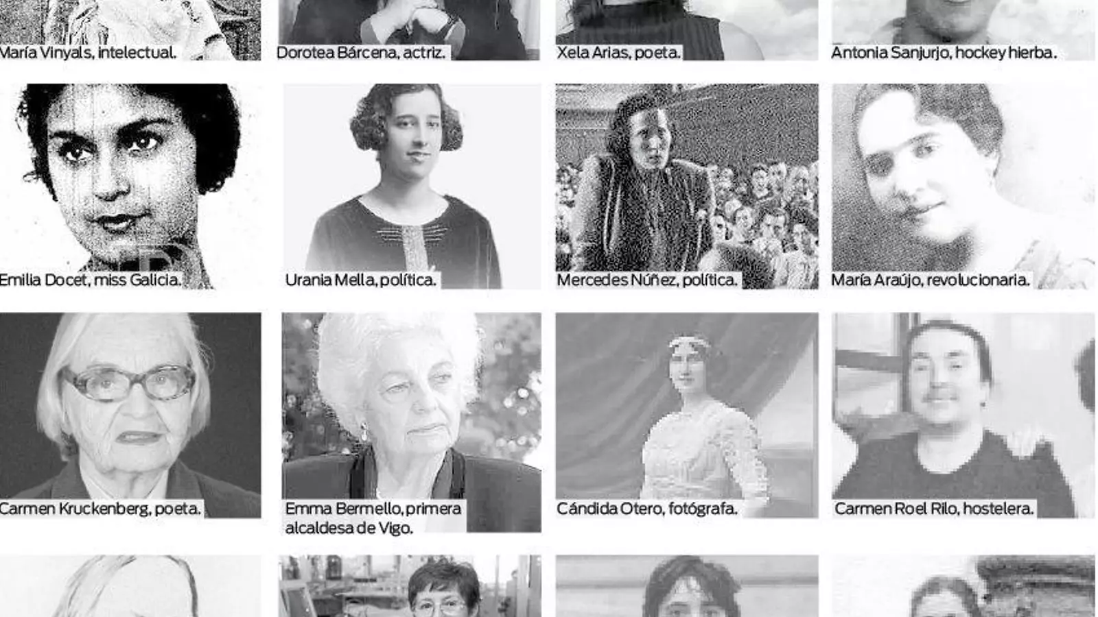 No hay un número exacto porque la historia olvida a las protagonistas femeninas. Sin embargo, desde la Edad Media existen referencias del protagonismo feminino en el desarrollo local, ya sea en la política, en el mundo empresarial, en las artes y la cultura, pero también en la ciencia y en el deporte. Así lo han comprobado en sus trabajos de investigación desde el medievalista Carlos Barros, a la investigadora Aurora Marco o más recientemente, Montse Fajardo, María Casar y Xoana Pintos en sus trabajos de recuperación de la memoria histórica.