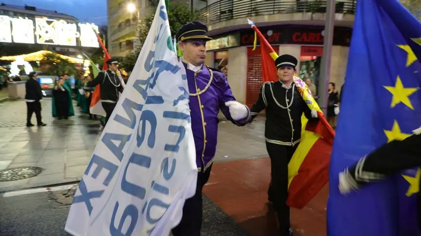 Las agrupaciones de Bembrive, Zamáns, Valladares y Beade, que desfilaron en este orden hasta el Paseo de Alfonso XII, animaron las luces navideñas como una atracción más que asombró a vecinos, a visitantes que se acercaron a la ciudad para conocer su famosa decoración y a transeúntes en busca de las últimas gangas del ‘black friday’, en un momento en que la lluvia dio una tregua.
