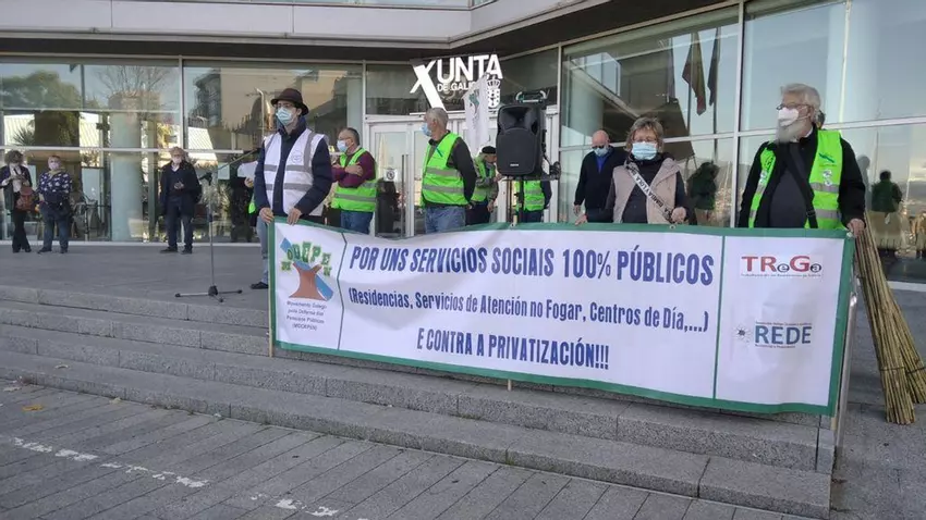 Representantes de la Asociación Trega (Traballadores de Residencias de Galicia), del colectivo Rede (de familiares de usuarios de centros geriátricos) y del Movemento Galego pola Defensa das Pensión protestaron ayer ante la delegación territorial de la Xunta para denunciar la situación de la residencia de mayores de Salvaterra, intervenida por la administración, y de todos los centros geriátricos en los que “parece que no se ha aprendido nada de la primera ola de la pandemia de covid”. Los pensionistas creen que "ni la administración ni las empresas hicieron nada para evitar que esta segunda ola llegase a los centros con consecuencias “aún más graves". La portavoz de Trega (colectivo que denunció ante Política Social y el Sergas la situación de la residencia de Salvaterra), Cristina Moreno, dijo que el principal problema de los geriátricos es la falta "sangrante" de personal, y asegura que las inspecciones no son efectivas porque las direcciones de los centros lo saben antes.
