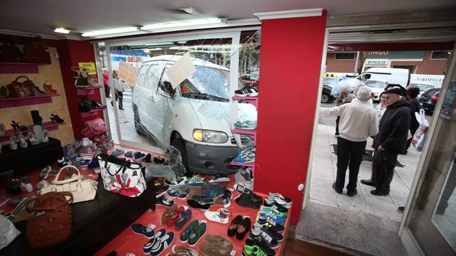 Una furgoneta sin frenos entra en una zapatería