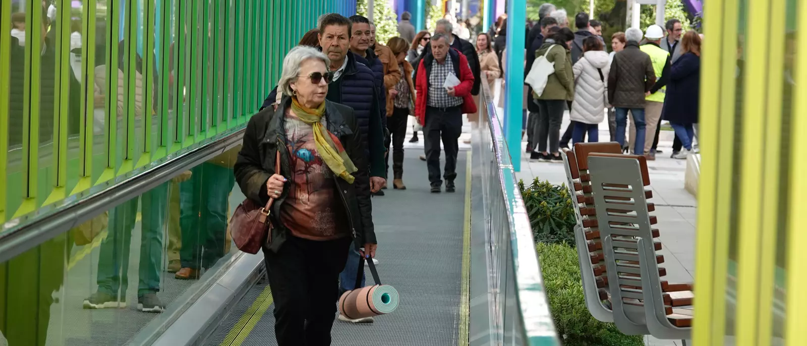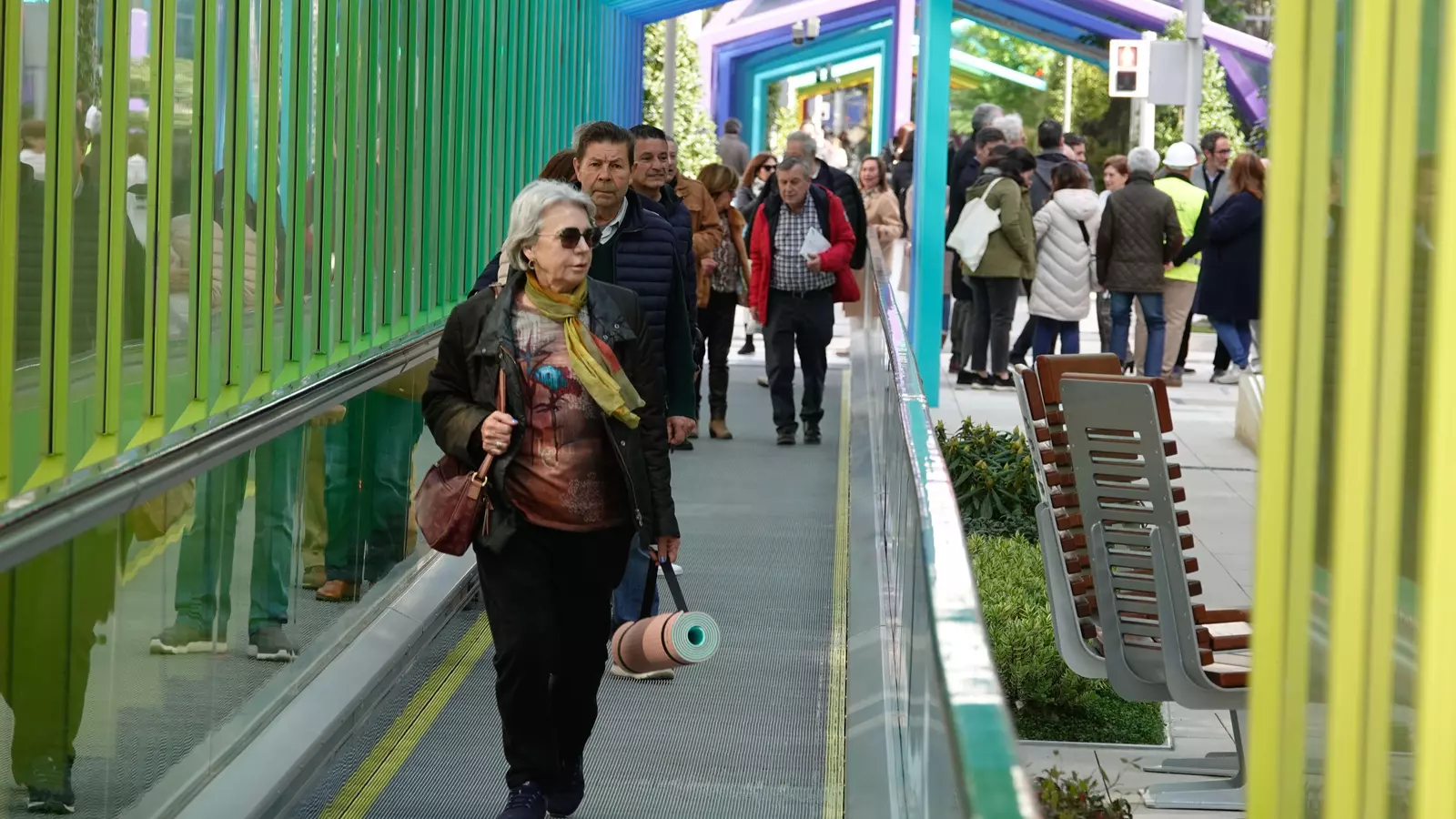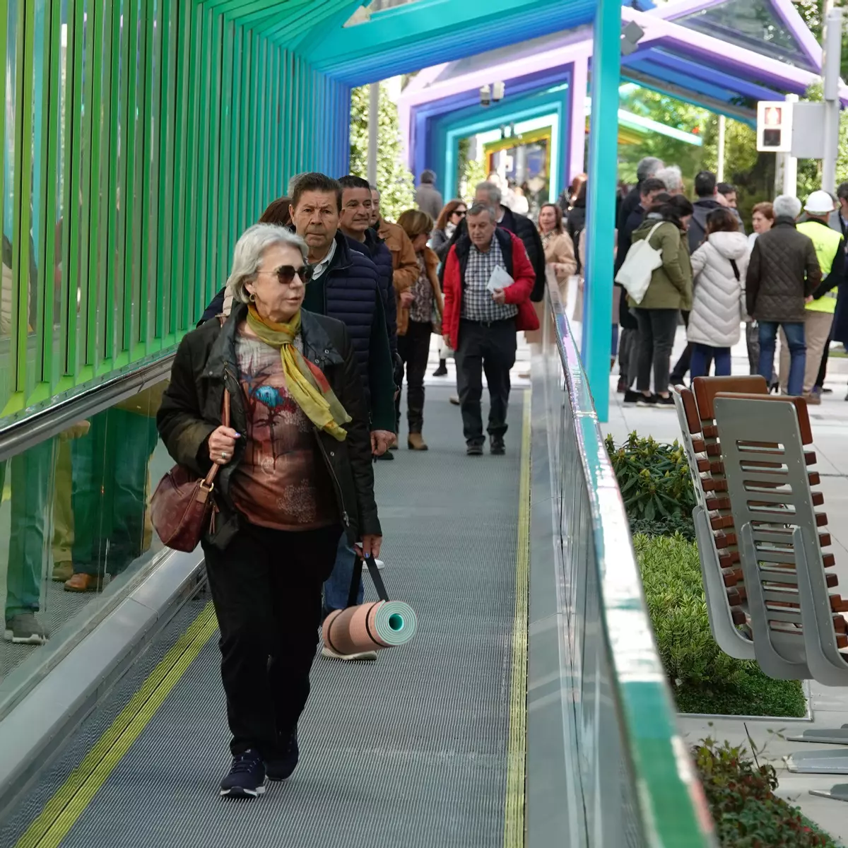 La apertura del segundo tramo de las rampas mecánicas de Gran Vía completa la conexión entre Urzaiz y la Plaza de España. Las rampas cuentan con pavimentación capaz de generar energía a través de las pisadas. Además, bajo el Pezseto se ha instalado una pantalla interactiva que simula el mar.