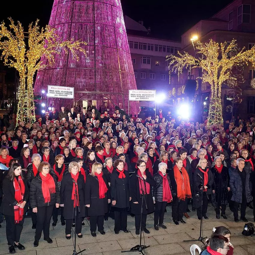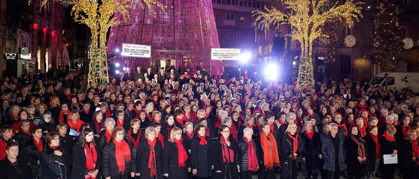 Acopovi, entidad que agrupa a corales de la ciudad, protagoniza el primero de los tres conciertos protesta que había anunciado el alcalde Abel Caballero para reivindicar mejoras en las infraestructuras clave de la ciudad. Con este concierto reclama una conexión de alta velocidad ferroviaria directa entre Vigo y Madrid a través de Cerdedo.