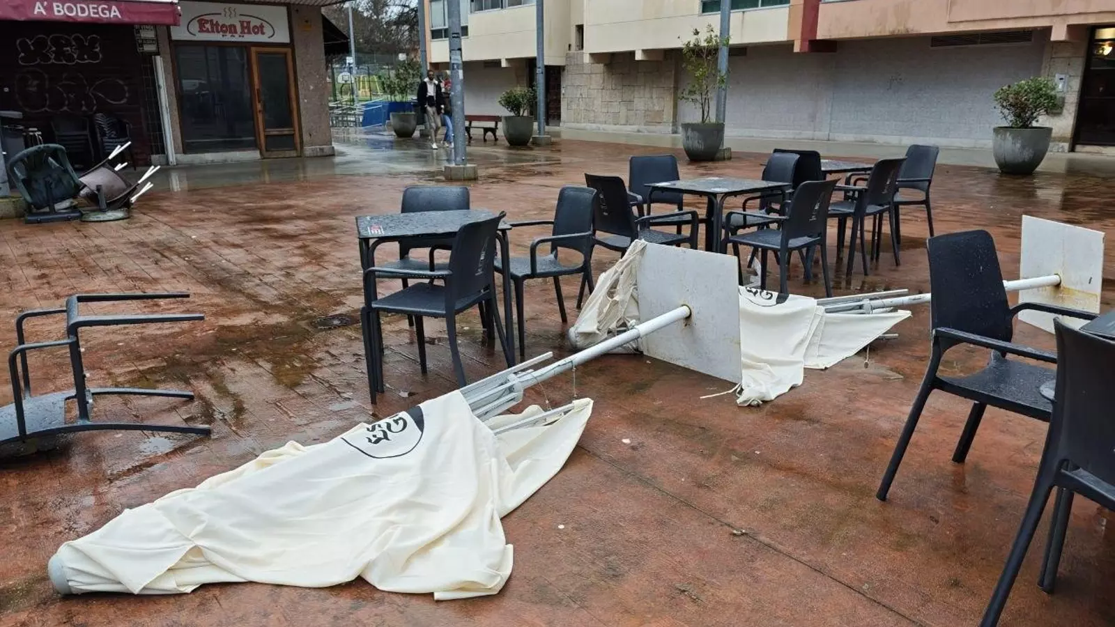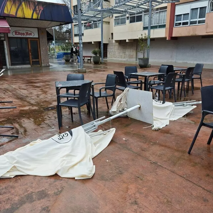 Así, el temporal ha cancelado vuelos en Peinador, derribado árboles, contenedores, sombrillas de terrazas e incluso tejados. La nieve se ha apoderado de las carreteras del área, impidiendo el paso de camiones hasta la comunidad.