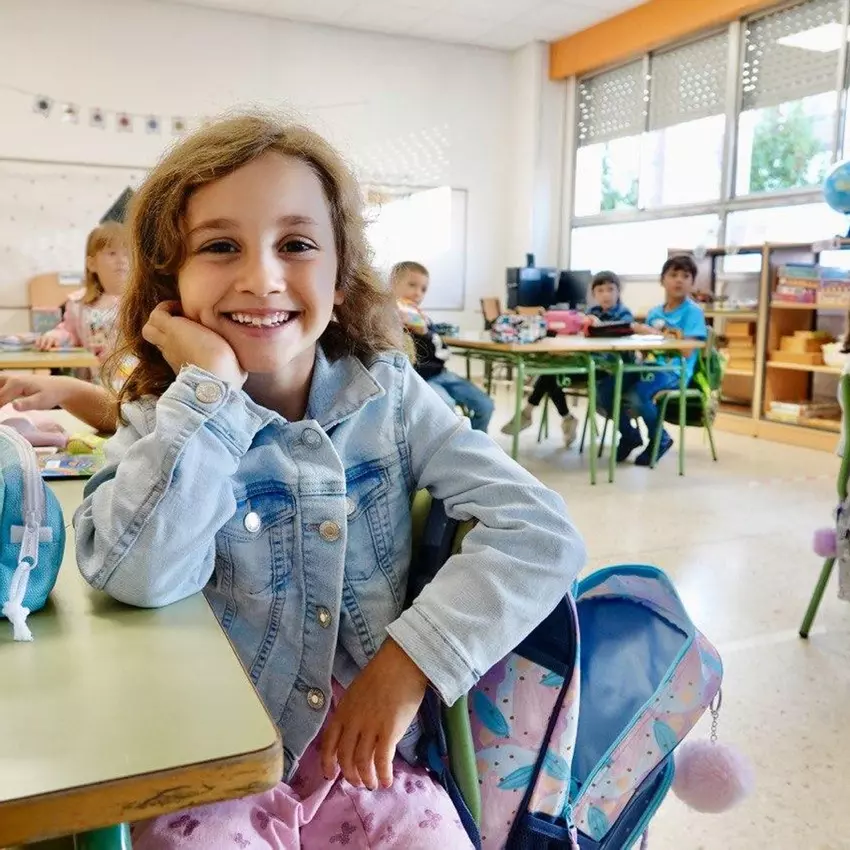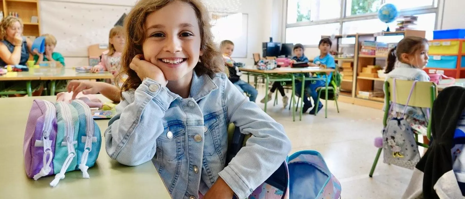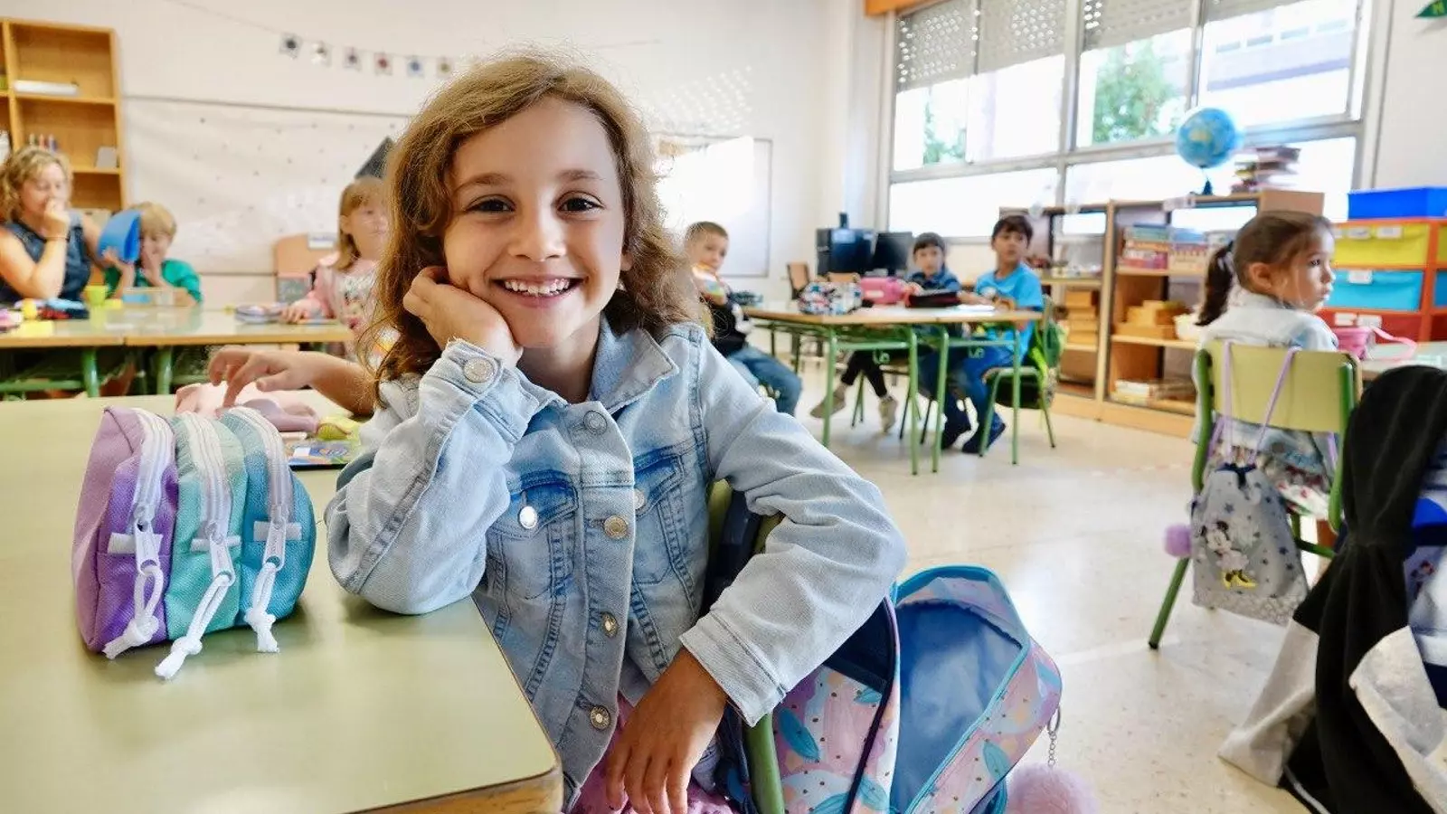 Una alumna sonriente en su primer día de clase. // Vicente Alonso
