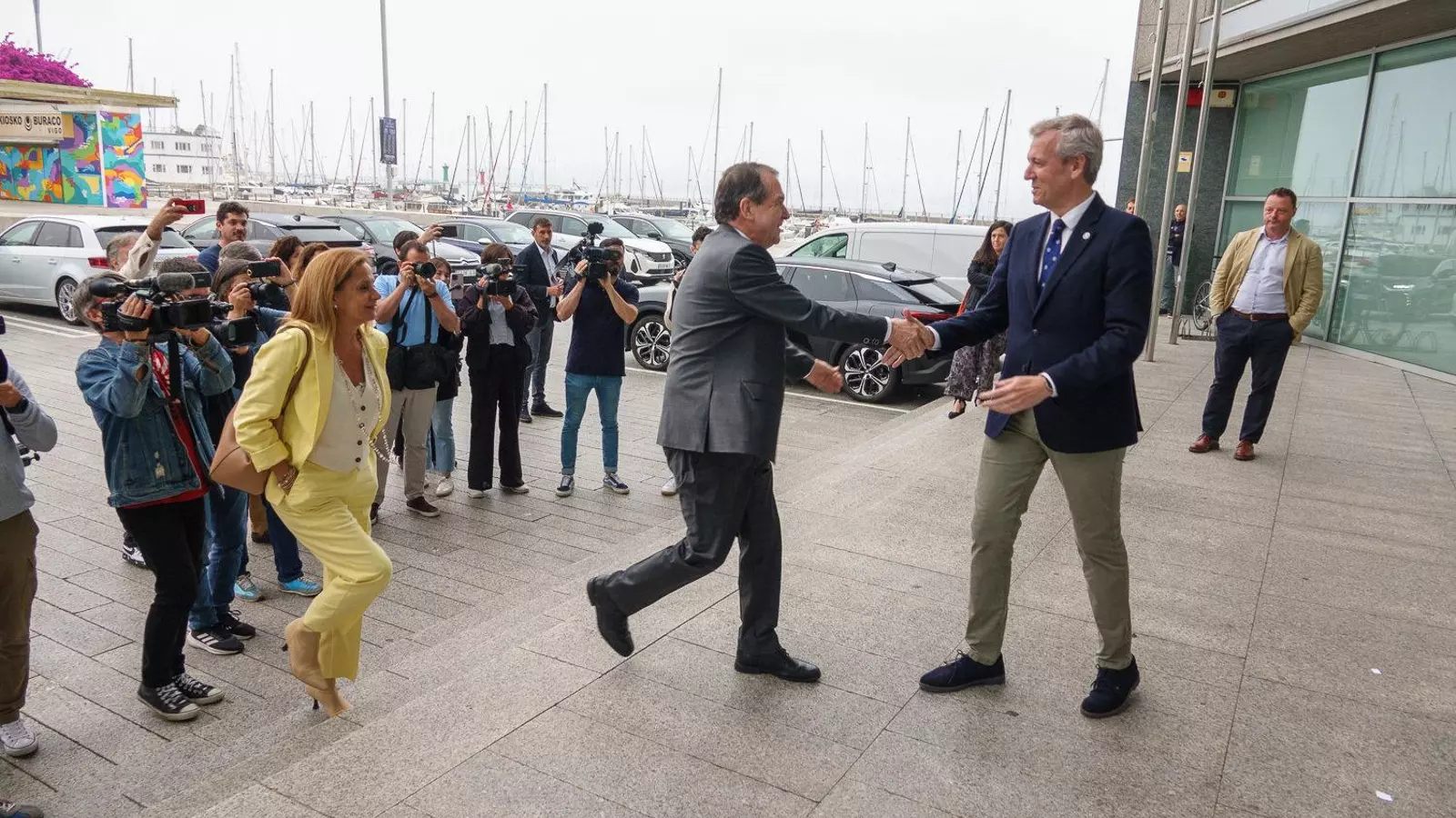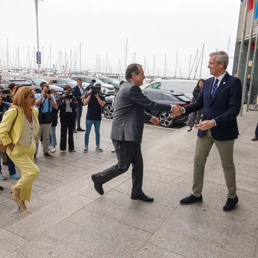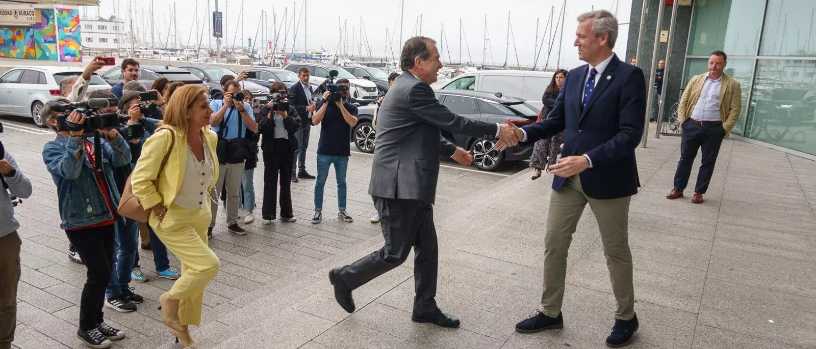 Cordialidad en la primera reuniónentre el alcalde de Vigo, Abel Caballero, y el presidente de la Xunta, Alfonso Rueda, que se celebró en la sede de la Xunta en Vigo