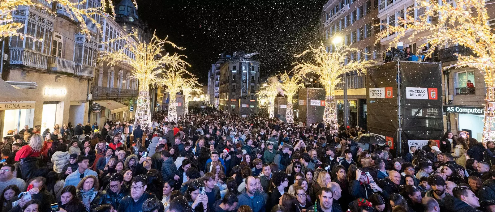 En esta galería de fotos revivimos la magia del encendido: las calles abarrotadas, los arcos luminosos, los árboles gigantes y el ambiente festivo que ya se respira en cada rincón de Vigo.