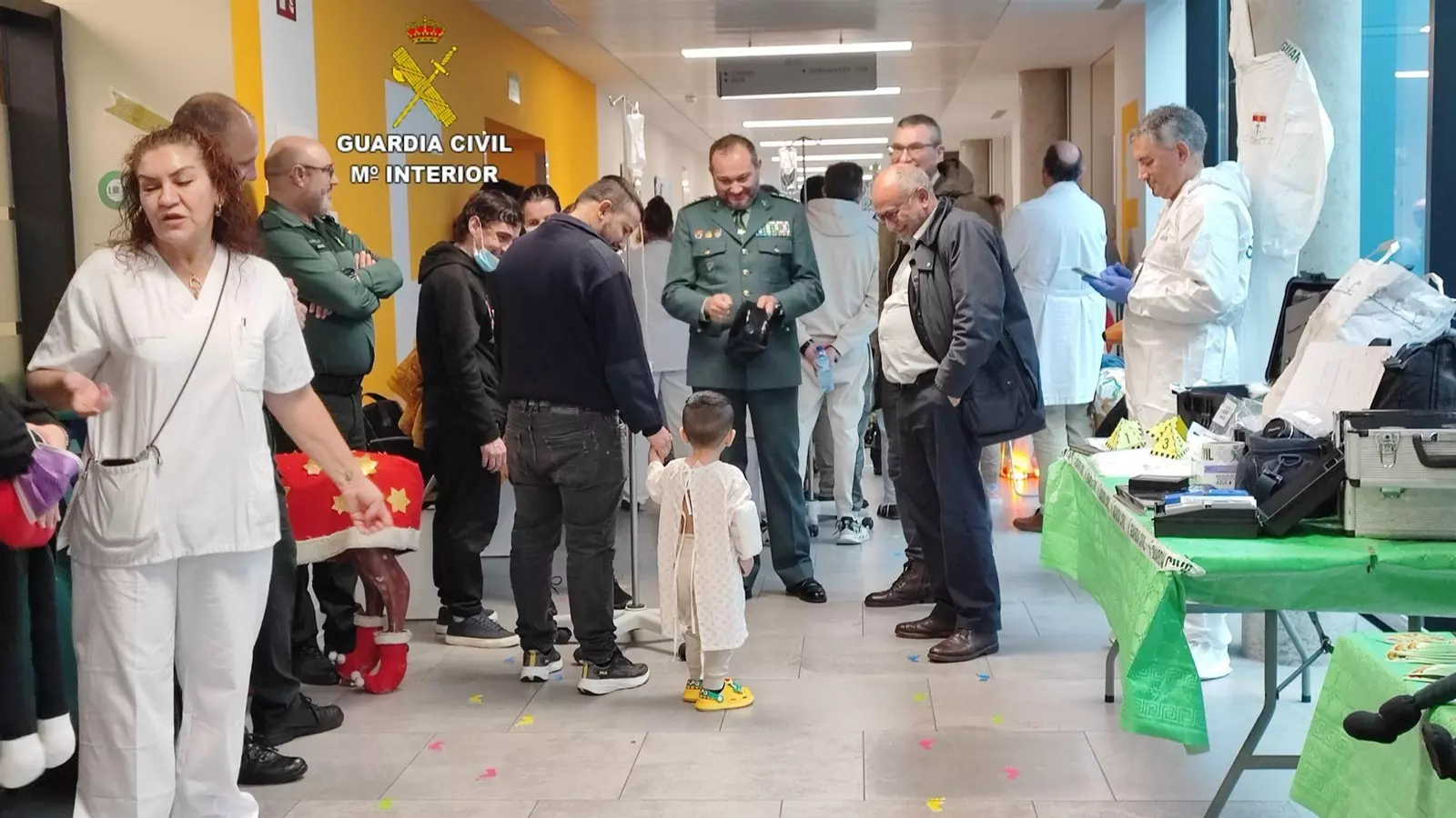 La Guardia Civil ha realizado este viernes una visita institucional a los niños que se encuentran ingresados en la Unidad de Pediatría del hospital Álvaro Cunqueiro de Vigo.