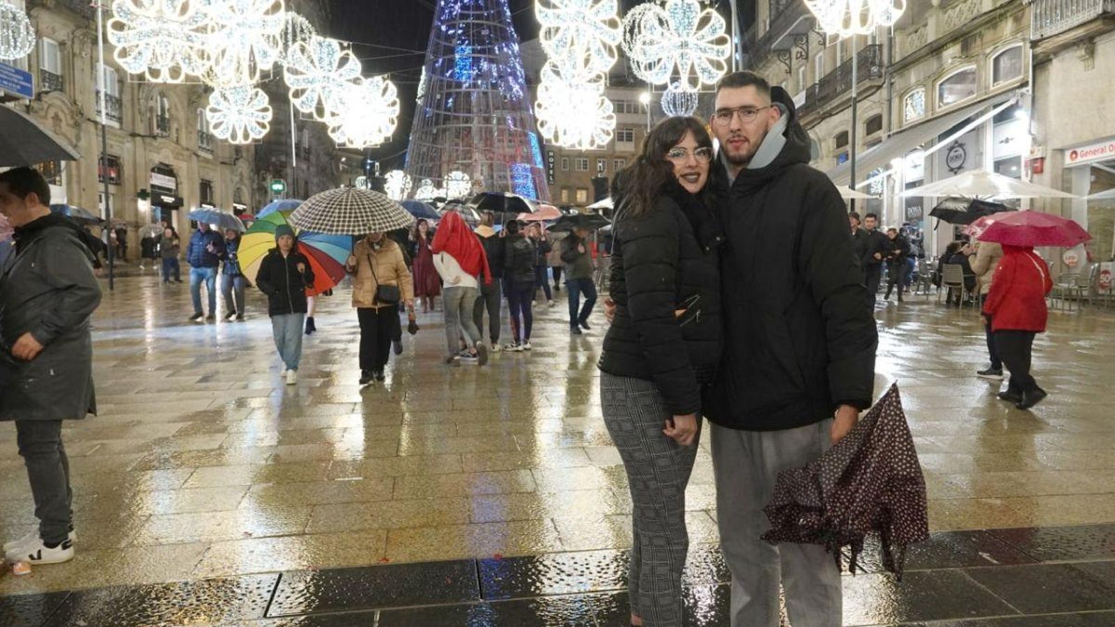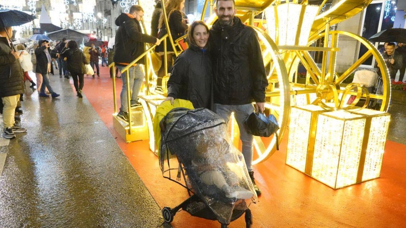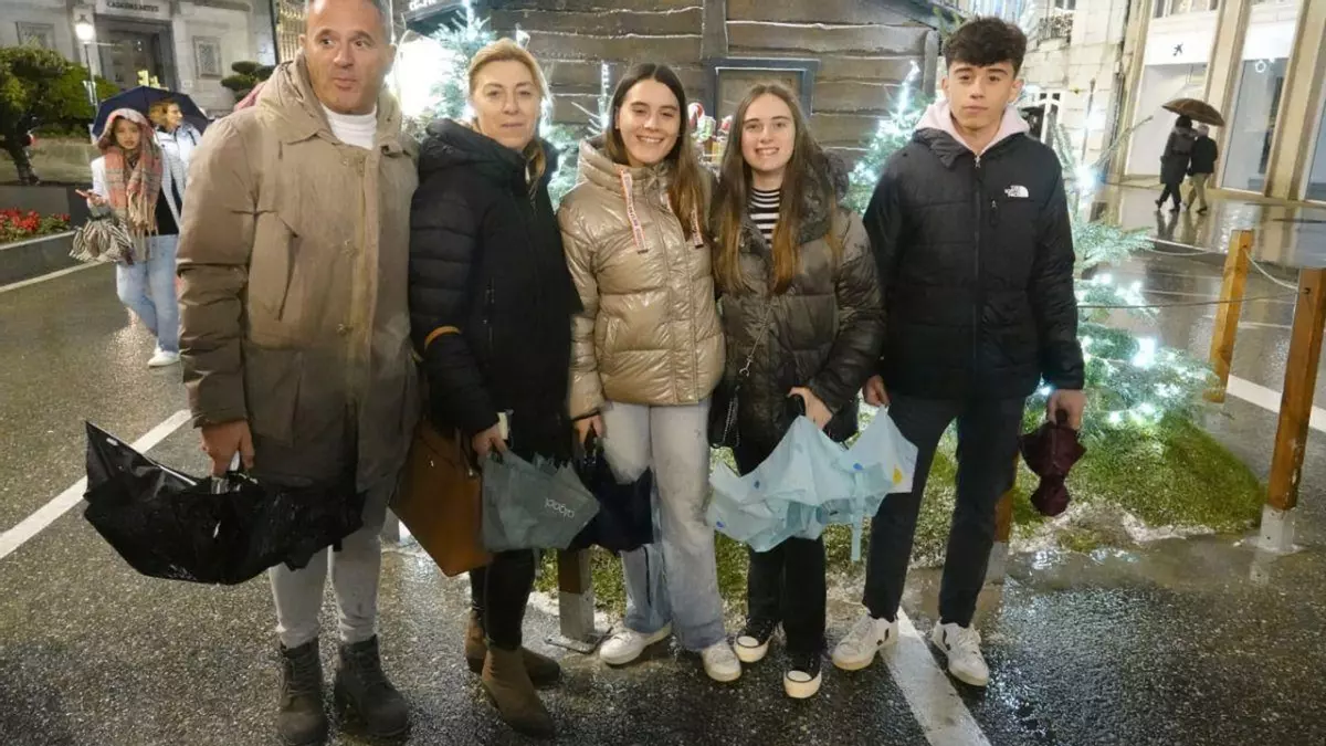 Los turistas apuraron sus últimas horas de un intenso fin de semana en Vigo aguardando ayer, en la zona de Policarpo Sanz y Porta do Sol, al encendido de las luces, resguardándose de una intensa lluvia allí donde hubiese un portal o el saliente de un balcón. De Madrid, Valencia, Santiago, Oporto… ¡Incluso de Miami!, como los Soler Gutiérrez, que aprovecharon la visita a su familia, residente en esta ciudad, para conocer la Navidad viguesa. ¿Son mejores estas luces que las que hay en Estados Unidos? “Estas son maravillosas”, contestaban.