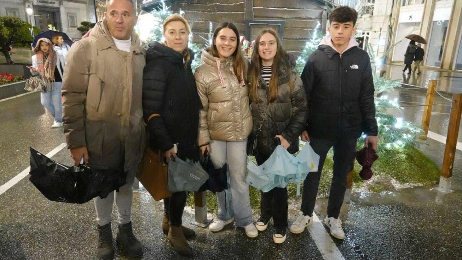 Rafa, Inma, Paula, Pablo y Martina: “Llegamos el miércoles de valencia y las luces de vigo nos han impactado. Nos ha encantado todo. Destacaríamos el decorado que hay en a pedra”.