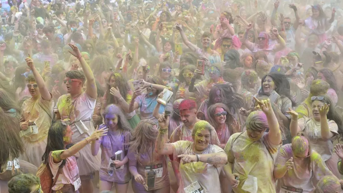 La carrera Holi Life regresó a Vigo tres años después con más de 5.000 participantes que llenaron el entorno de Samil, donde realizaron un recorrido de 5 kilómetros dispuestos a mancharse de polvos de distintos colores y a finalizar el evento con una auténtica fiesta junto a las pistas de tenis con música a cargo de tres DJs.