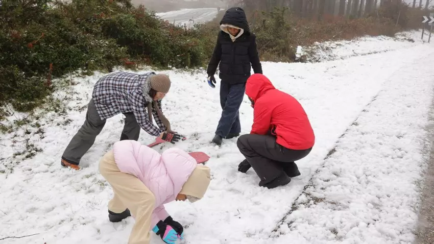El frío bajó la cota de nieve y los primeros copos llegaron al alto de Fontefría, donde desde por la mañana , familias completas acudían para disfrutar con la nieve. La situación se complicó por la tarde, llegando a nevar en el casco urbano de A Cañiza, algo que no suele muy frecuente, cubriendo por completo el municipio.
