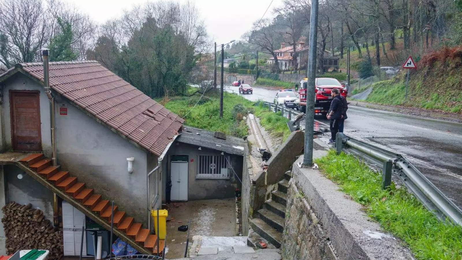 Pasadas las tres de la tarde, el hielo en la calzada causó una salida de vía en la carretera de Bueu. El turismo colisionó contra el muro de hormigón de la vía que se desprendió, alcanzando los restos a una vivienda, sin que se produjeran heridos.