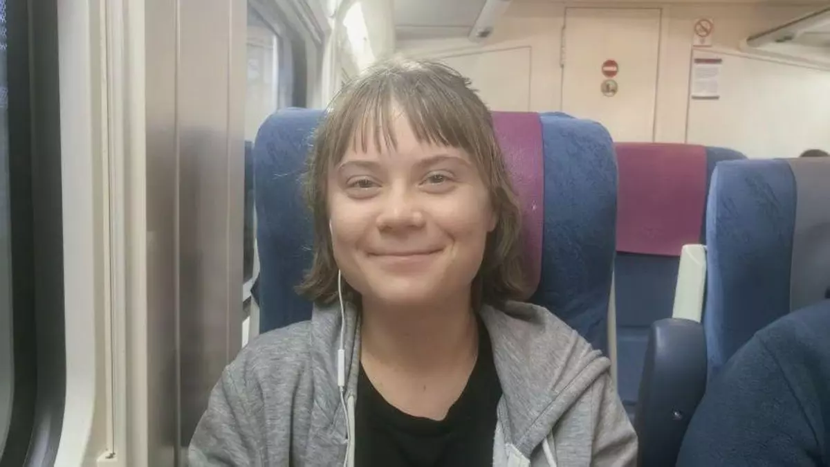 La activista sueca de 22 años fue fotografiada en un tren hacia la ciudad y llamó la atención de los viajeros