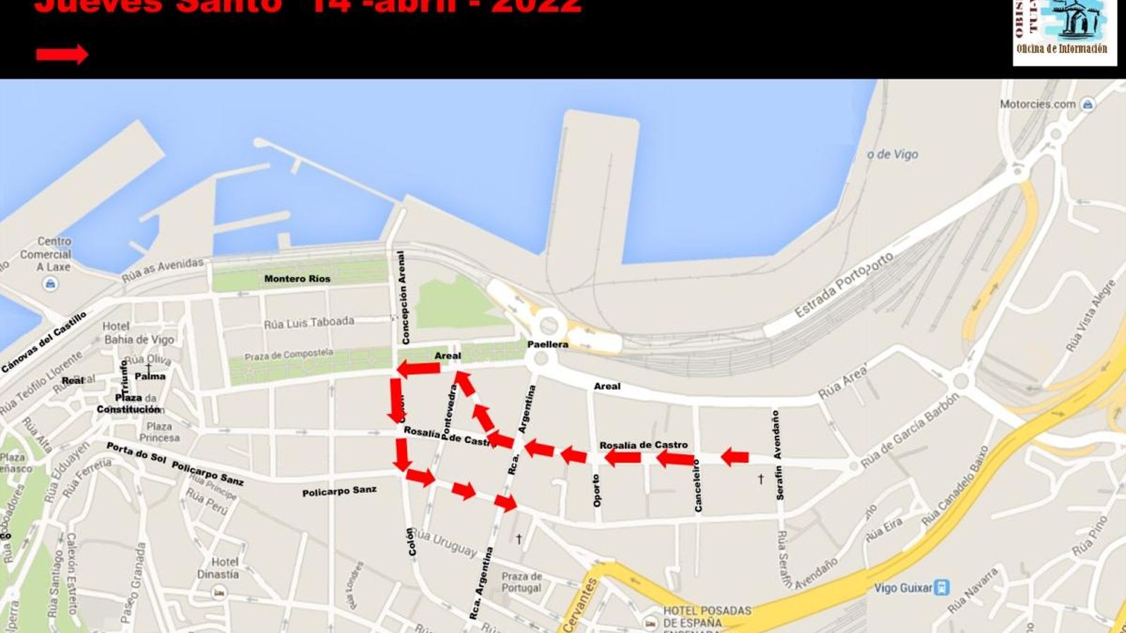 El jueves, los devotos tendrán oportunidad de acudir a los santos oficios en la Basílica de Santa María y recorrer la procesión a partir de las 20,00 horas tras el culto en el Sagrado Corazón de Jesús que recorrerá Rosalía de Castro, Inés Pérez de Zeta, Areal y Colón. En el cruce con García Barbón, habrá una parada para oración y actuación de una coral. En Teis, a las 19,00 tendrá lugar la procesión de Nuestro Padre Jesús el Nazareno con salida y recogida en la iglesia Divino Salvador y recorrido por camiño Real, camiño da Chumba, avenida de Galicia, camiño Caixide y de nuevo camiño Real.