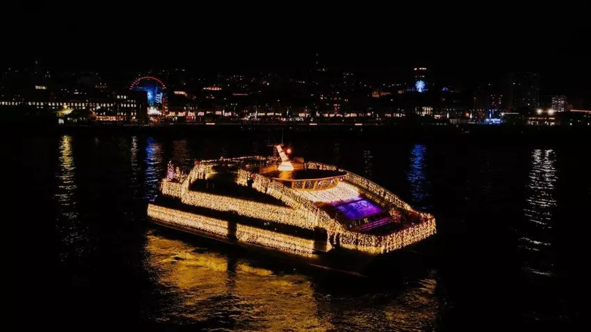 El catamarán, usado para el transporte de ría, estará decorado con luces, tendrá música a cargo de un DJ y ofrecerá servicio de bar por cuarta vez consecutiva en esas fechas. Como novedad, ofrecerá cenas a bordo durante la travesía