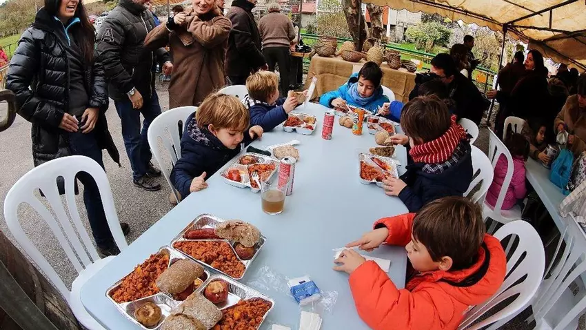 El escanciado de la sidra levantó gran expectación, "se sirvieron unos 200 litros y la que más gustó fue la sidra joven, más dulce que la madura". La sidra de Luneda acompañó al menú de la jornada: chorizo a la sidra, zorza con manzana y manzana asada.