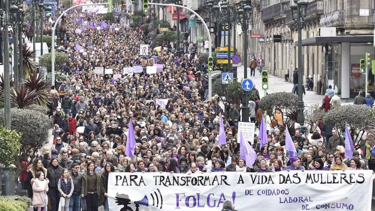 Hacía tiempo que no se veía en Vigo una manifestación tan unitaria y tan contundente, y eso que la ciudad está acostumbrada a ellas. Asociaciones, colectivos, organizaciones, plataformas, sindicatos (los tres CIG, UGT y CC OO) y partidos políticos (PSOE, Marea y BNG) se sumaron a la marcha organizada por Asemblea Galegas 8M tras una pancarta con el lema "Para transformar a vida das mulleres".
