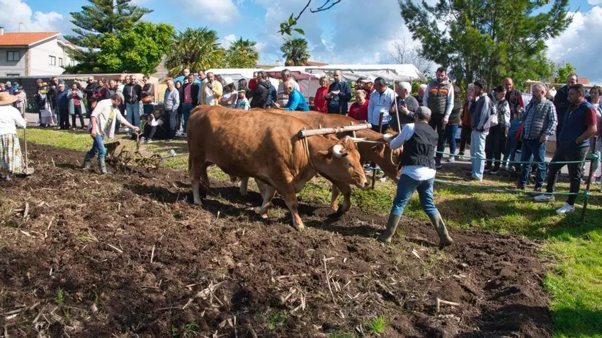 Manolo Costas y el colectivo Malaherba impulsaron la Festa da Sementeira, donde se ve el trabajo con bueyes y otros aperos