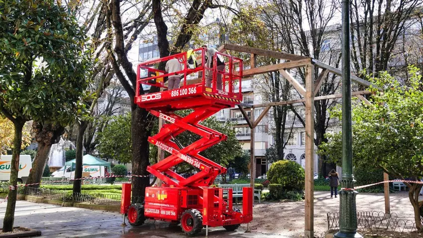 Los trabajos para el montaje del mercadillo navideño Cíes Market comenzaron ayer en la Alameda, donde operarios municipales trasladaron los materiales y comenzaron a ensamblar las estructuras de madera.