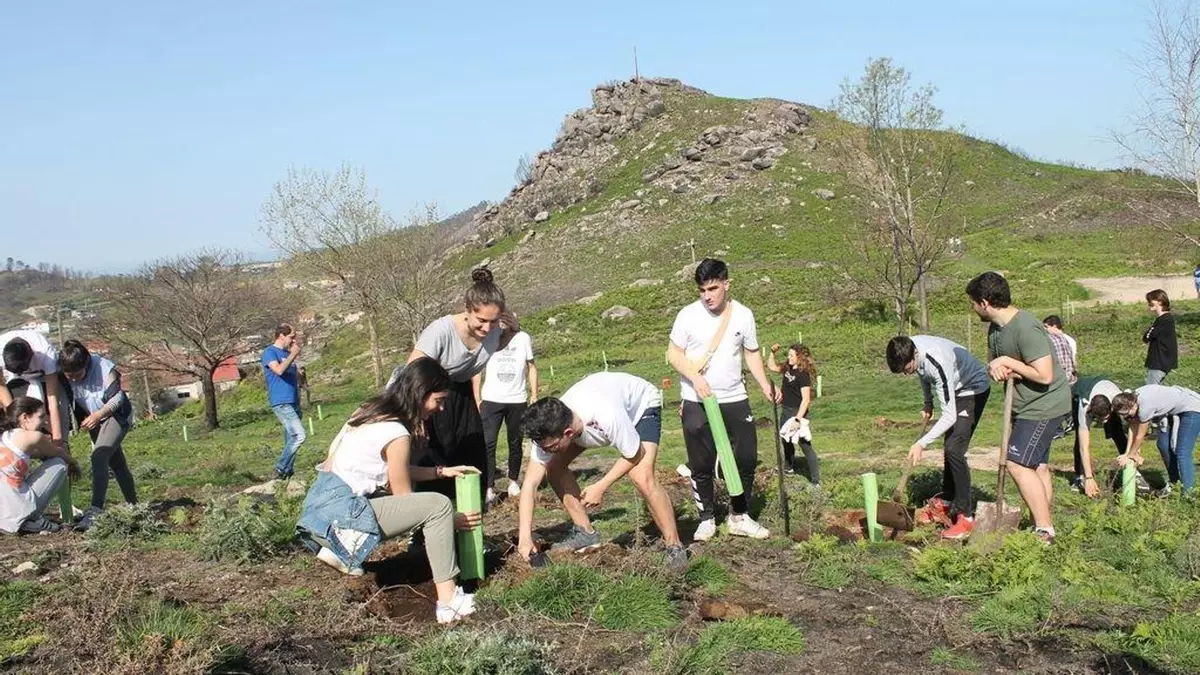 Cerca de un millar de alumnos del Colegio Salesianos de Vigo están llevando a cabo jornadas de repoblación forestal en dos hectáreas de suelo en Chandebrito, castigado durammente por los incendios del pasado mes de octubre. Cuentan con la colaboración de la Mancomunidad de montes que cedió la extensión de terreno en la propia cima, ubicada justo en frente del Monte do Castro de Chandebrito.