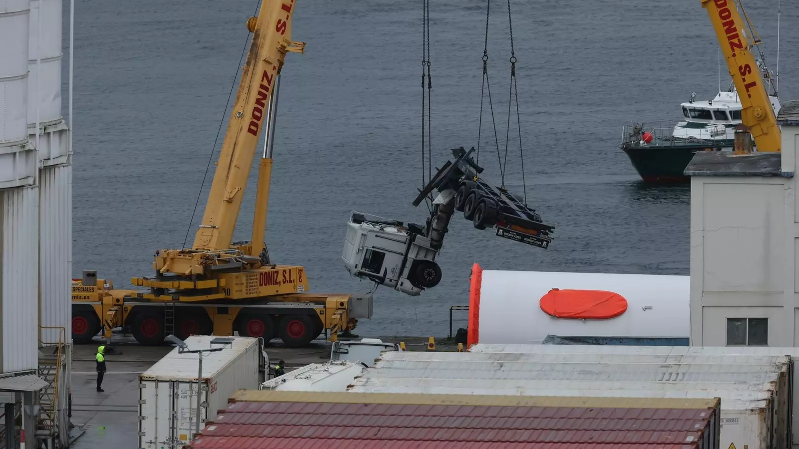Muere el conductor de un camión tras caer al mar en el puerto de Vigo
