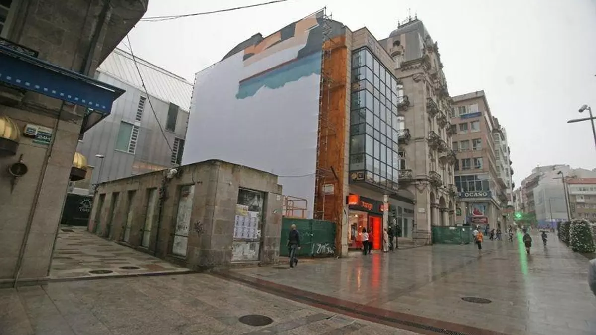nnnLos trabajos para transformar la medianera de un edificio de Príncipe en un mural gigantesco con la reproducción de la obra "Fiestra" de Urbano Lugrís comenzaron ayer y se prolongarán por espacio de diez días. "Es una obra de desarrollo muy pormenorizado y ellos calculan que serán unos diez días pero también están impresionados por la dimensión de la pared", dijo Caballero al respecto de la impresión del artista y un ayudante que hacen el mural desde ayer. El motivo de elegir esta obra del artista coruñés es para rendir homenaje a Lugrís, muy vinculado a Vigo después de que el diciembre pasado se cumpliesen 40 años desde su fallecimiento.