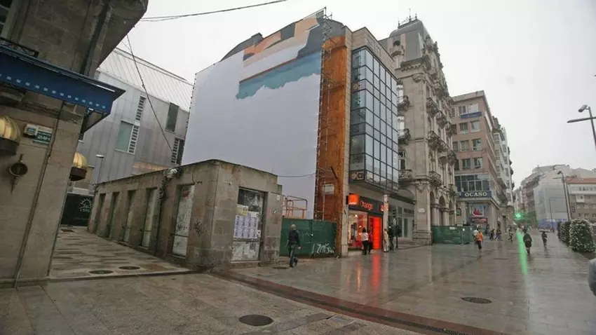 El alcalde acudió ayer a presenciar el inicio de la obra que ejecutará el artista urbano Luis Olaso, de 28 años de edad, para quien Abel Caballero no escatimó elogios y le situó entre los mejores de España de su estilo, "a pesar de su juventud". Durante su intervención ante los medios de comunicación, el regidor vigués anunció que esta iniciativa, que tiene un coste de algo más de 20.000 euros, se repetirá en otras 150 medianeras a lo largo de todo el término municipal, incluidas también algunas en parroquias. Entre otras destacó también la de la parte baja de la Pinacoteca, o un edificio en el final de Alcalde Portanet con la Avenida de Castrelos que "nunca debió ser construido y que tiene una medianera blanca que tapa las vistas del parque de Castrelos desde Arquitecto Palacios", dijo Caballero que también señaló que otra de las medianeras, en piedra, de Príncipe está en la lista de posibles actuaciones. "Y así tantas y tantas", señaló.
