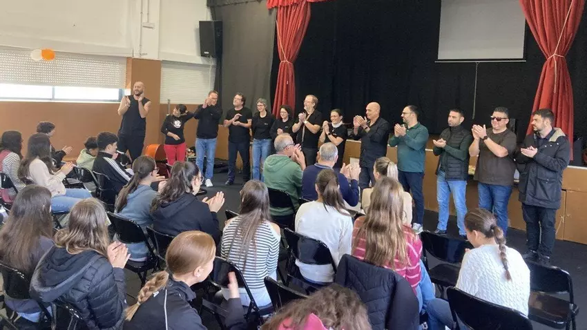 Imagen de la actuación de Sonus Insulae Sardinia y Danzbar de Suabia en el IES Proval.