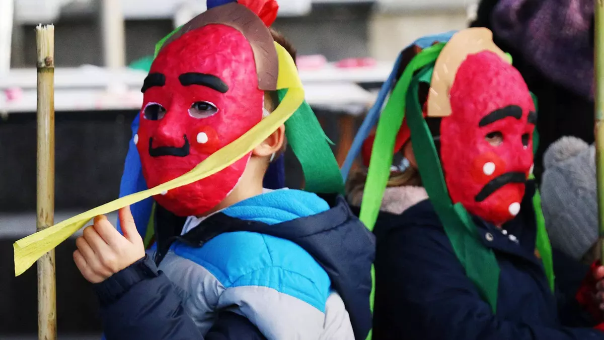 Os nenos fixeron a sús propia máscara nas instalacións da asociación veciñal do Casco Vello, baixo o nome Merdeirada Infantil.