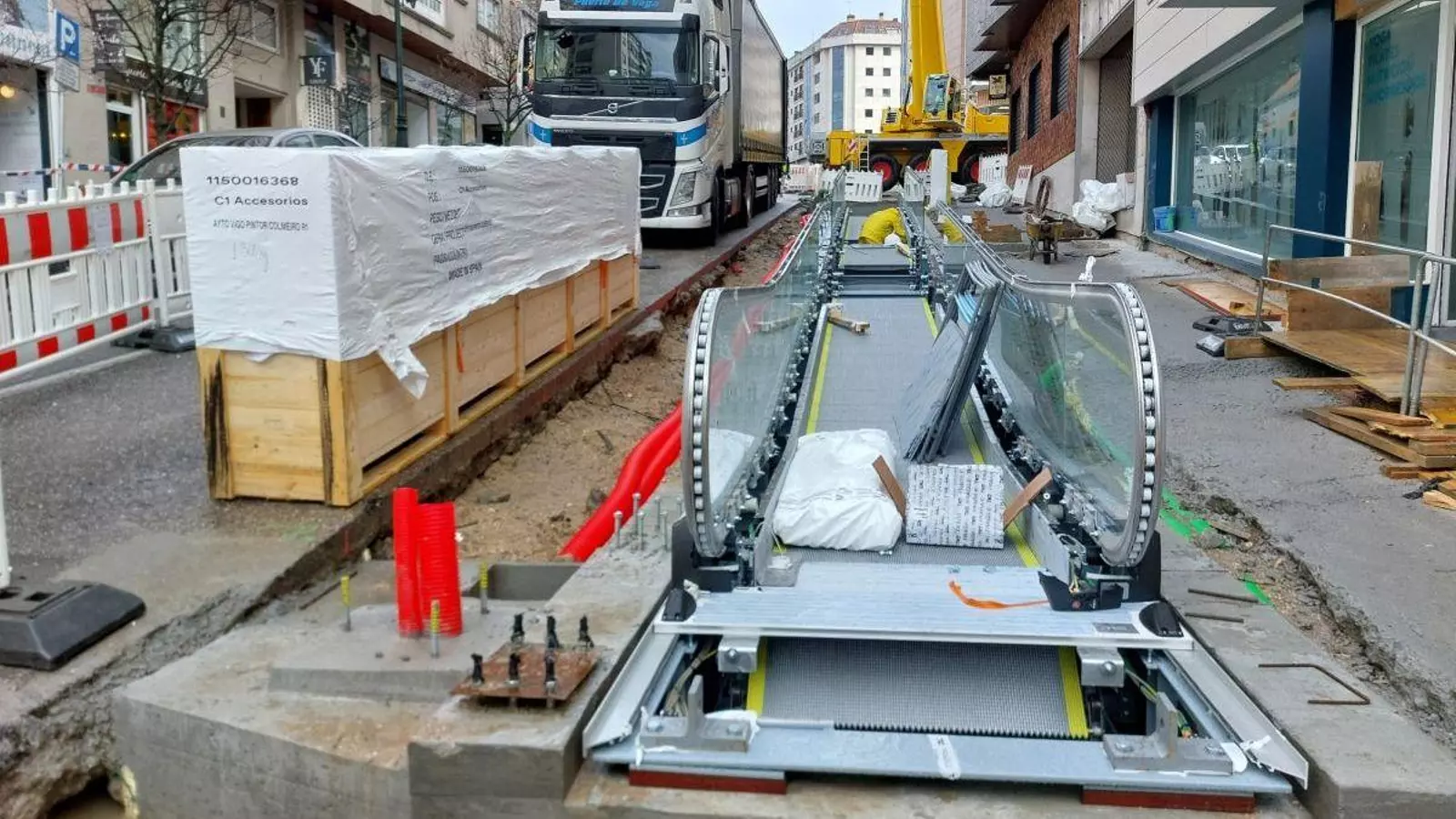 El Concello inició la instalación de la maquinaria de las primeras rampas mecánicas en la calle Pintor Colmeiro, entre Álvaro Cunqueiro y Tarragona. Se trata de dos de las cuatro rampas previstas en este tramo, con una inversión cercana a los 2,5 millones de euros, según informó Abel Caballero.