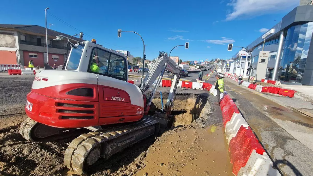 Esto se suma a las obras de humanización ya existentes, por lo que la complicación a la circulación ha sido notable. Aunque Bomberos de Vigo y Policía Local ya se vieron sorprendidos el domingo por el tamaño del agujero, este lunes directamente han abierto más metros la hendidura para poder trabajar en la reparación.