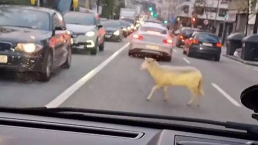 Una oveja sorprendió a varios conductores que circulaban por Vigo. Por circunstancias que se desconocen, el animal se metió en medio de la carretera, alterando el tráfico.