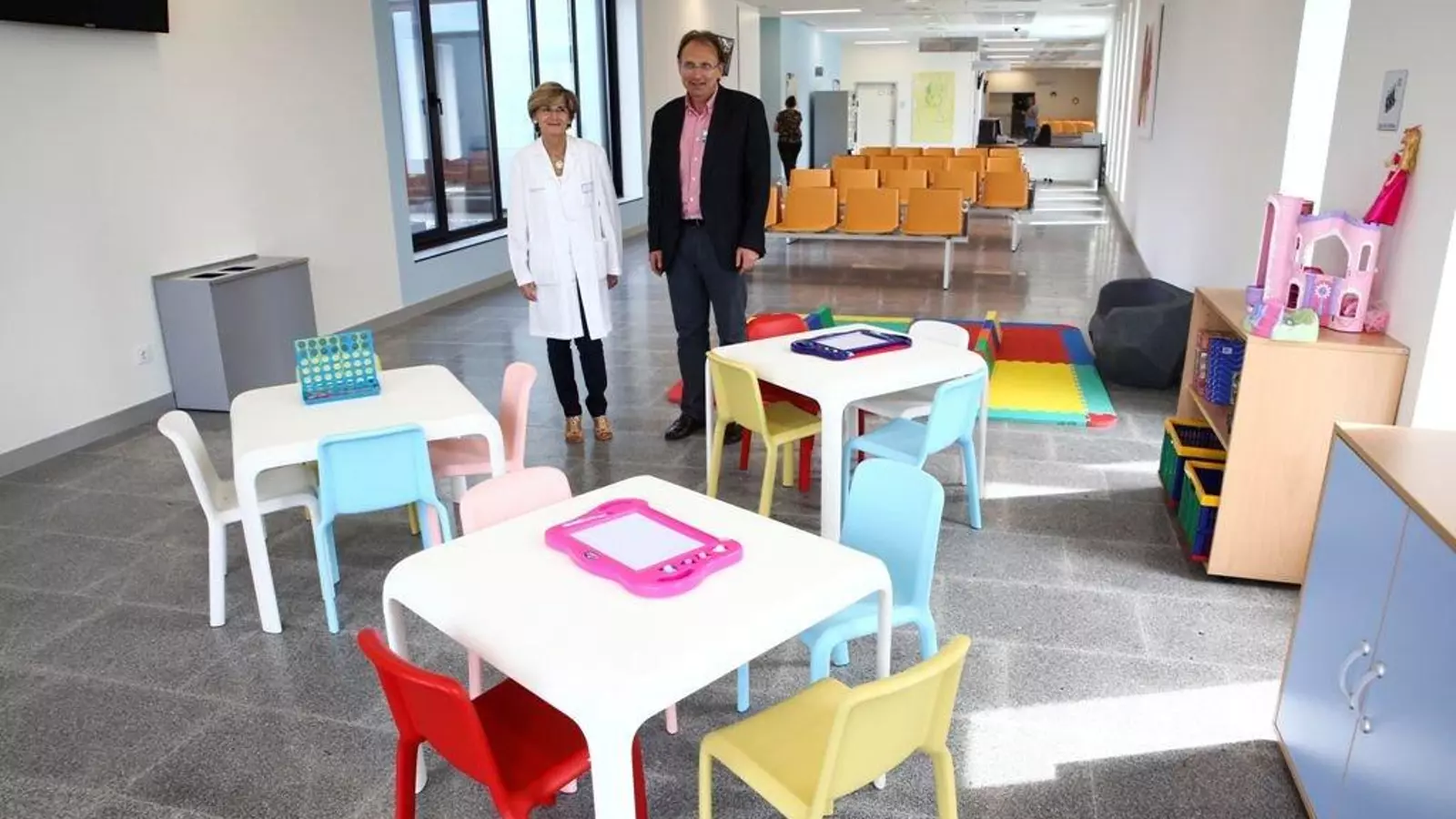Las consultas externas de Pediatría son sin lugar a dudas el espacio mejor decorado del hospital Álvaro Cunqueiro, con enormes cuadros en tonos alegres hechos por niños de entre 1 y 8 años (alguno recuerda a Miró), con juguetes y mobiliario adaptado a la infancia, y con carteles fáciles de entender para distinguir consultas, baños y otras estancias hechas por una asociación de autismo. Cinco pediatras empezarán a trabajar a partir de mañana en el nuevo hospital en las consultas de Alergología, Nefrología y Reumatología. Están en la zona rotulada con el C1. Los ciudadanos que tengan cita en Pediatría deberán aparcar en la zona de color naranja y coger el ascensor con la letra J. Es el mismo acceso que deben utilizar las pacientes de Obstetricia y Ginecología, puesto que son "vecinos" dentro del nuevo hospital. Este último servicio inicia su actividad mañana con la consulta de 12 especialistas procedentes del Xeral, Meixoeiro y del centro de especialidades de Coia. Las pacientes pueden acudir a consulta o a los gabinetes de exploración (G1), todos ellos con cuarto de baño para que puedan cambiarse las mujeres y con nuevos equipos (llegarán más ecógrafos en septiembre). En la zona intermedia entre las consultas y los gabinetes, que es de acceso restringido a los profesionales, están las áreas de trabajo, salas de reunión, ordenadores de telemedicina.