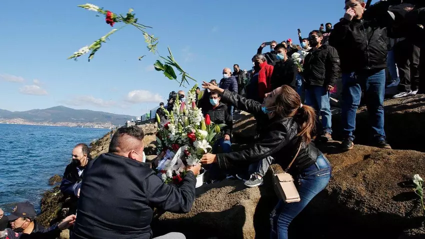 La comunidad peruana lanzó flores al mar por cada una de las víctimas del 'Villa de Pitanxo', a las que nombraron una a una y recordaron también a los españoles y marineros de Ghana. Una mujer imploró durante la ceremonia que se investigue por qué estaban pescando cuando había tan mala mar. Fue un acto emotivo y lleno de dolor.