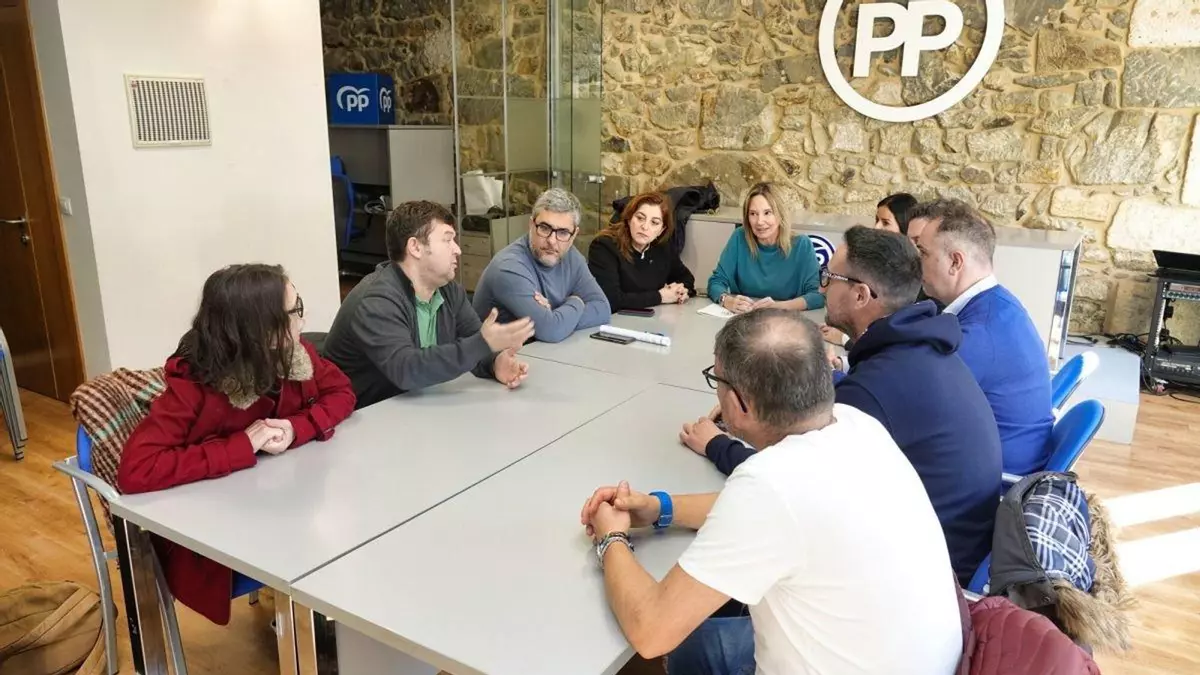 Miembros del PP de Vigo, entre ellos su presidenta Marta Fernández-Tapias y los candidatos vigueses al 18-F Patricia García, Marta Mariño y Miguel Fidalgo, se reunieron ayer con representantes del comité de empresa de Vitrasa, que llevan en huelga indefinida desde el pasado 25 de noviembre. Al encuentro acudió un miembro de cada uno de los sindicatos que conforman dicho comité: Imanol Arnoso (CIG), Manuel Núñez (CCOO), Rosa Martínez (UGT) y Fernando Pérez (USO).