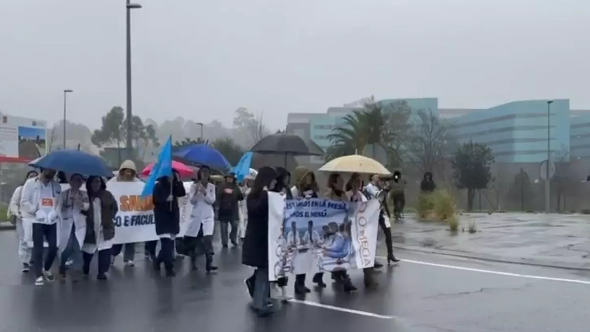 El área sanitaria de Vigo es la de mayor seguimiento de la huelga médica en Galicia. Este lunes se celebra la primera jornada de la quinta oleada de huelgas, pero esta vez con carácter indefinido. El Sergas asegura que el seguimiento en los hospitales vigueses alcanza al 27% de los facultativos, mientras que los sindicatos elevan la participación al 85%. Los médicos vigueses protagonizaron a mediodía una concentración en el Cunqueiro y marcharon con pancartas hasta la rotonda del hospital.