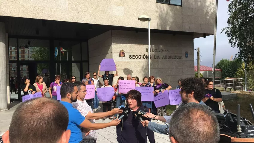 Un grupo feminista realizó ayer una concentración ante los juzgados de Vigo en solidaridad con Juana Rivas, huida al negarse a entregar a sus hijos a su exmarido, denunciado por violencia.