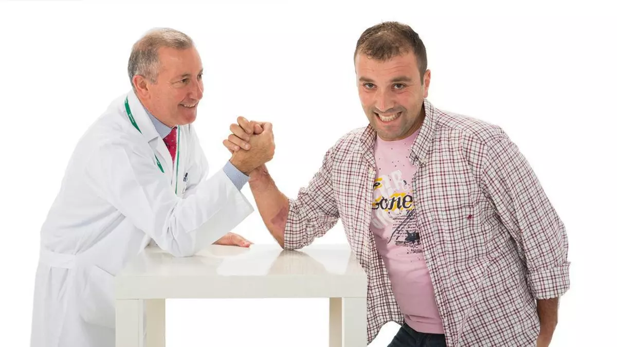 El joven Óscar González se sometió a un reimplante de brazo en Povisa que le permitió recuperar la movilidad.
