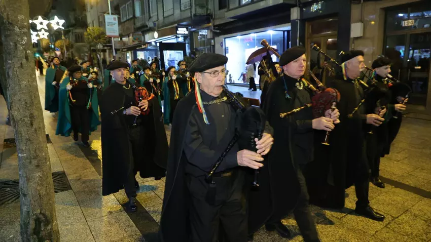 Cuatro rondallas de Vigo (Beade, Bembrive, Valladares y Zamáns) desfilaron este viernes por la tarde por la calle peatonal del Calvario haciendo sonar todos sus instrumentos, banderas al viento.